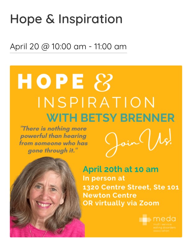 Co-Presenter with Dr Caryn Honig: “The Overlooked Midlife Crisis: Eating Disorders in Midlife and Beyond” at the MEDA National Conference in Newton, MA